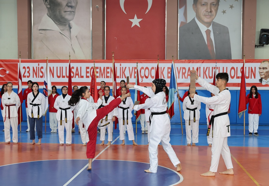 Etkinlikler çerçevesinde sporcular tarafından düzenlenen tekvando gösterisi izleyicilere sunuldu.