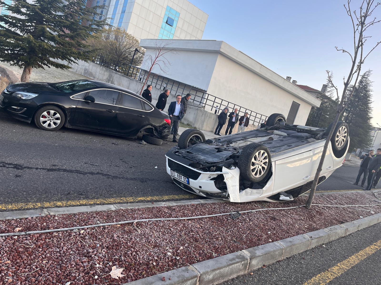 Altın Yıldız kavşağında, Marriott Otel karşısında meydana gelen trafik kazasında iki otomobil çarpıştı. Çarpışmanın etkisiyle beyaz renkli araç ters dönmüş bir halde refüje savrulurken, siyah otomobilin arka kısmında ciddi maddi hasar meydana geldi.