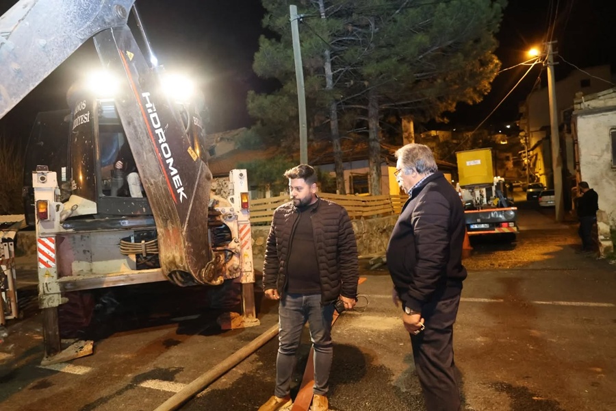 Hattın en kısa sürede normale dönmesi için başlatılan kazı ve onarım işlemleri, akşam saatlerinde de yoğun bir tempoyla sürdürüldü.