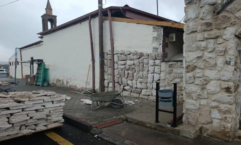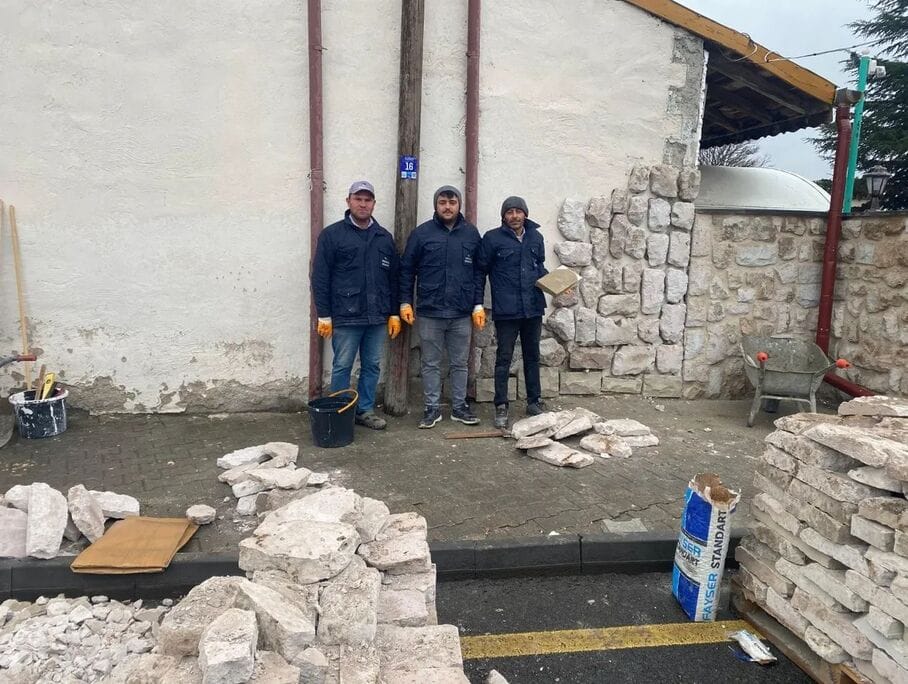Belediye ekipleri, mevcut düzenlemenin ardından şimdi de cami duvarlarının yerli taş kaplama ile güçlendirilmesi için uygulama aşamasına geçti.