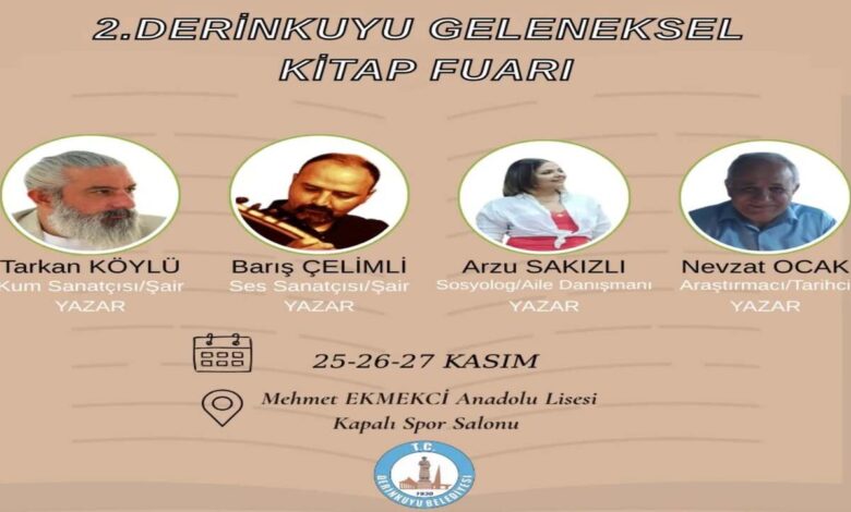 Derinkuyu’da, kültür ve edebiyat etkinlikleri kapsamında düzenlenen 2. Geleneksel Kitap Fuarı 25 Kasım’da başladı ve 27 Kasım’a kadar devam edecek. Kitap fuarı Mehmet Ekmekci Kapalı Spor Salonu’nda gerçekleştiriliyor.