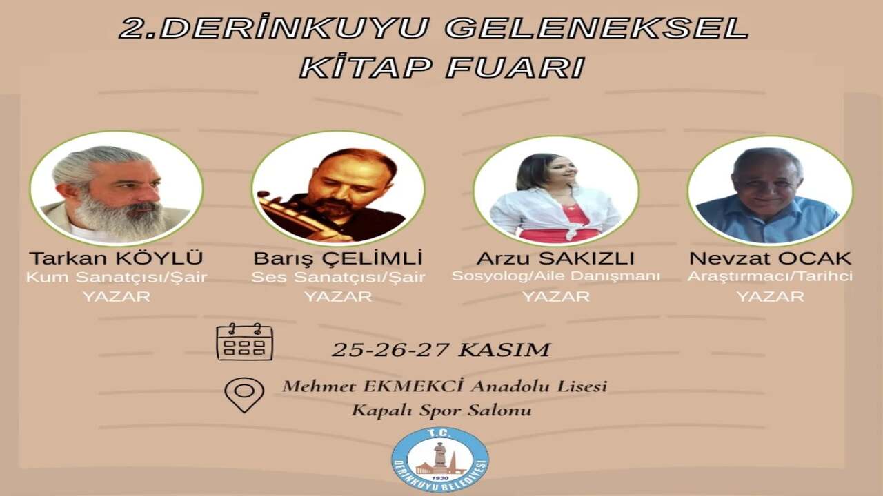 Derinkuyu’da, kültür ve edebiyat etkinlikleri kapsamında düzenlenen 2. Geleneksel Kitap Fuarı 25 Kasım’da başladı ve 27 Kasım’a kadar devam edecek. Kitap fuarı Mehmet Ekmekci Kapalı Spor Salonu’nda gerçekleştiriliyor.