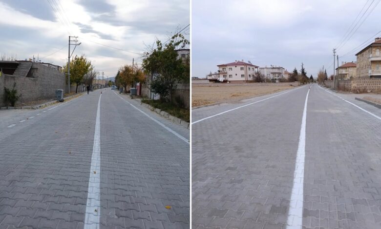 Belediye ekipleri, mevcut asfalt ve parke yolların düzenlenmesinin ardından sokaklarda yol şerit çizgilerini çekerek trafiğin daha düzenli ve güvenli bir şekilde akmasını sağladı.