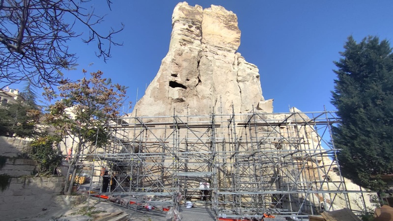 Göreme’de Peribacasındaki Çatlaklar Nedeniyle Güçlendirme Çalışmaları Başladı