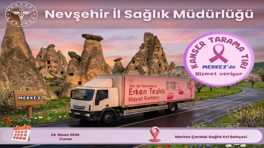 Nevşehir İl Sağlık Müdürlüğü, “Erken teşhis hayat kurtarır” sloganıyla yürüttüğü kanser tarama faaliyetlerini vatandaşın ayağına götürmeye devam ediyor. Sağlık Müdürlüğü’nden yapılan resmi duyuruya göre tam donanımlı Kanser Tarama Tırı Merkez ilçede hizmet verecek.