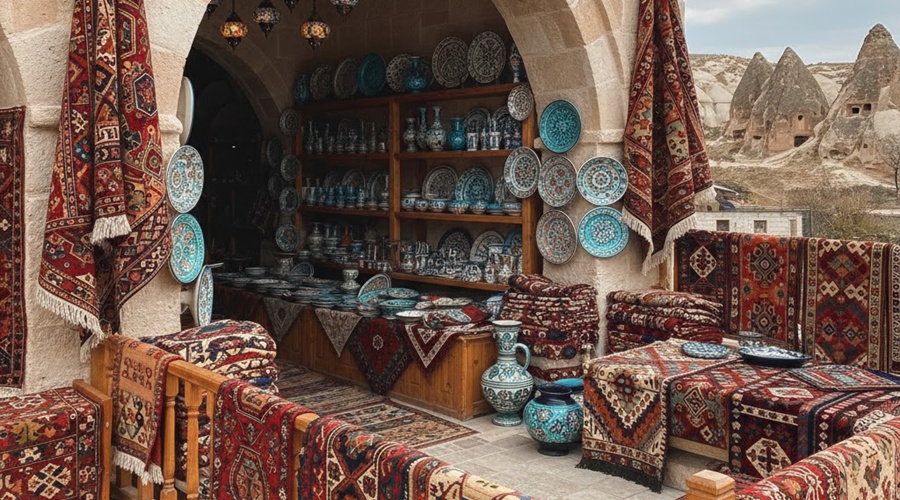 Kapadokya, el yapımı seramikler, halılar, kilimler ve hediyelikler konusunda çok zengin. Çömlek atölyelerinde hem üretim sürecini izleyebilir hem de istersen kendin deneme yapabilirsin. Rengârenk tabaklar, kaseler, sürahiler ve duvar süsleri insanı kendine çekiyor. Halı ve kilimlerin desenleri, renkleri de en az manzara kadar etkileyici. “Evde bir köşe yaparım.” diyerek başladığın bakınma turu, “Bunu da alayım.”larla kolayca alışverişe dönüşebilir. Evine döndüğünde her gün gördüğünde Kapadokya’yı hatırlatacak bir parça seçmek çok keyifli.