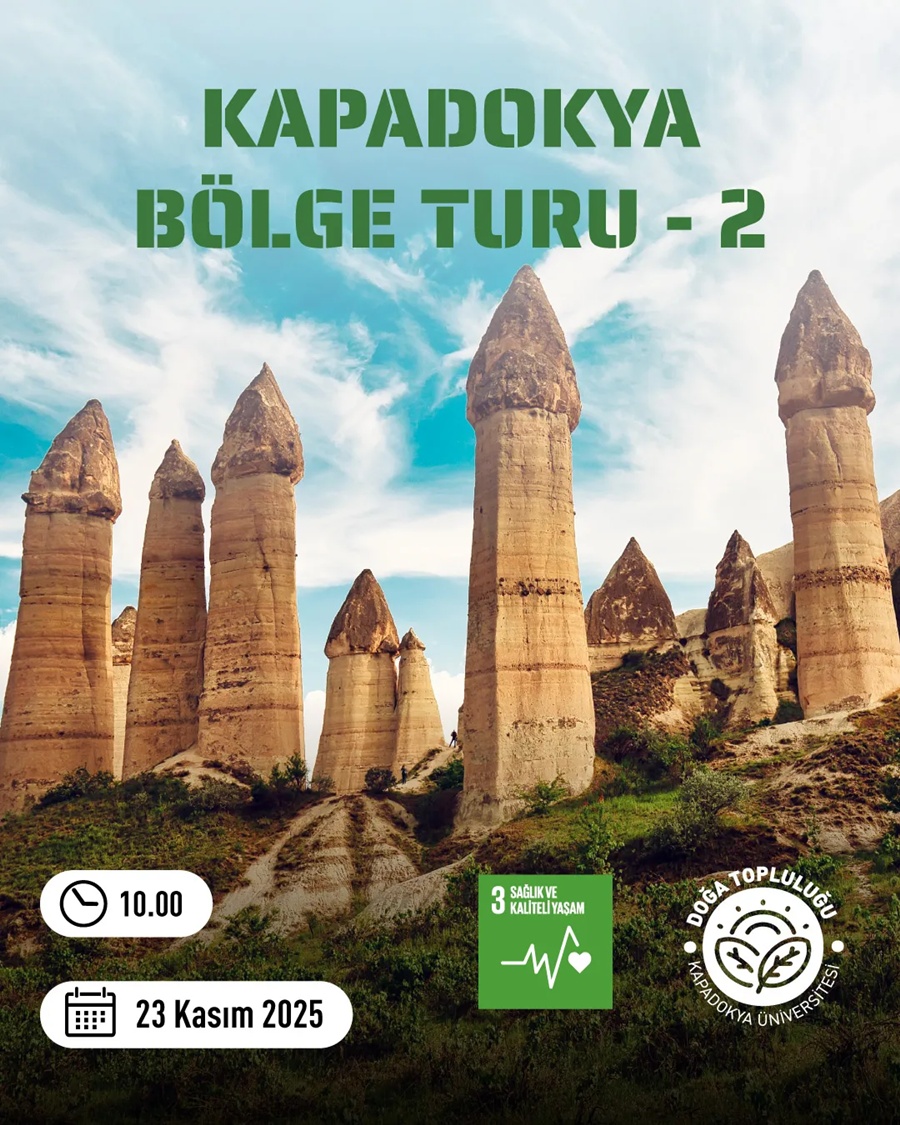Kapadokya Üniversitesi tarafından düzenlenen “Kapadokya Bölge Turu-2”, 23 Kasım 2025 tarihinde katılımcıları eşsiz bir keşif deneyim yaşatacak. Tur, sabah saat 10:00’da başlayacak ve bölgenin tarihi, doğal ve kültürel değerlerini kapsayan kapsamlı bir program sunacak.