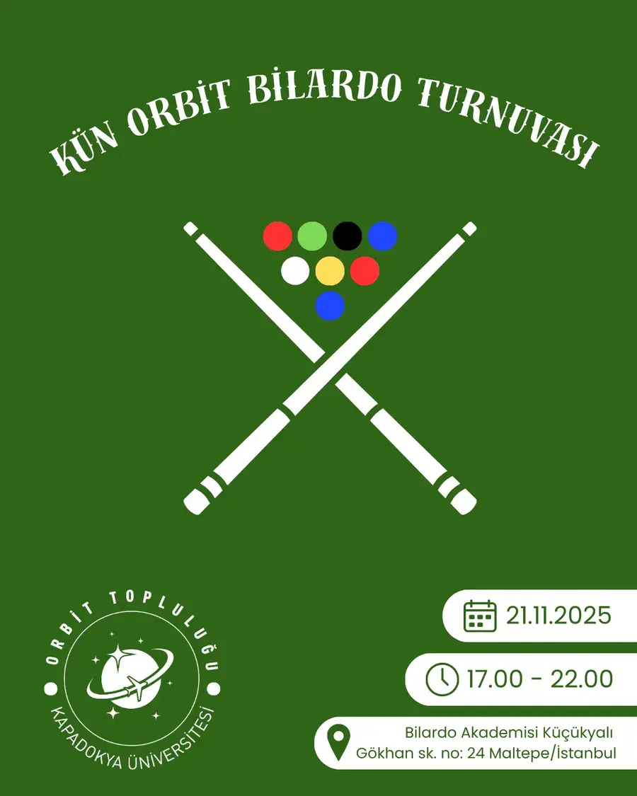 Kapadokya Üniversitesi Orbit Topluluğu’nun düzenlediği bilardo turnuvası, İstanbul’da üniversite öğrencilerini aynı etkinlikte buluşturacak.