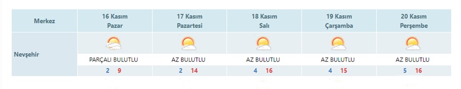 | Hacıbektaş | Pus 2° / 11° |