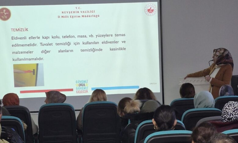 Nevşehir genelinde eğitim kurumlarında görev yapan temizlik personeline yönelik iş sağlığı ve güvenliği eğitimi gerçekleştirildi. İl Millî Eğitim Müdürlüğü bünyesinde faaliyet gösteren İşyeri Sağlık ve Güvenlik Birimi tarafından düzenlenen programda, çalışanların temel iş sağlığı ve güvenliği konularında bilgilendirilmesi amaçlandı.