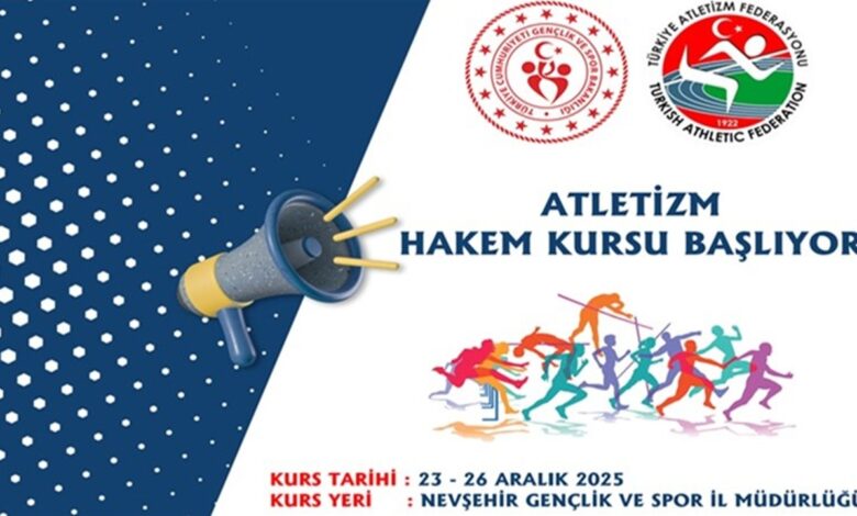 Türkiye Atletizm Federasyonu tarafından düzenlenen Atletizm Hakemlik Kursu, 23–26 Aralık 2025 tarihleri arasında Nevşehir’de gerçekleştirilecek. Atletizm branşında görev almak isteyen adaylara yönelik planlanan kurs, dört gün sürecek kapsamlı bir eğitim programını içerecek.