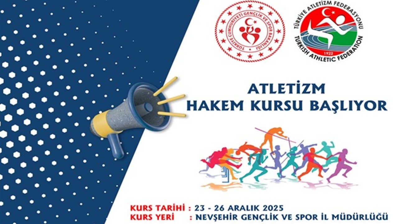 Türkiye Atletizm Federasyonu tarafından düzenlenen Atletizm Hakemlik Kursu, 23–26 Aralık 2025 tarihleri arasında Nevşehir’de gerçekleştirilecek. Atletizm branşında görev almak isteyen adaylara yönelik planlanan kurs, dört gün sürecek kapsamlı bir eğitim programını içerecek.
