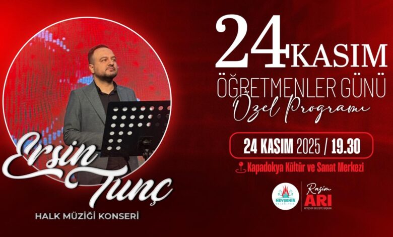 Nevşehir Belediyesi, 24 Kasım Öğretmenler Günü kapsamında özel bir konser etkinliği düzenliyor. Etkinlik, tüm Nevşehir halkı ve öğretmenlerin katılımına açık olarak gerçekleştirilecek.