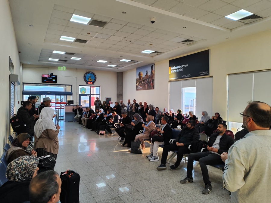 Yapılan dua sonrası umreciler yakınlarıyla vedalaştı ve görevliler eşliğinde İstanbul aktarmalı olarak Cidde’ye hareket etti.