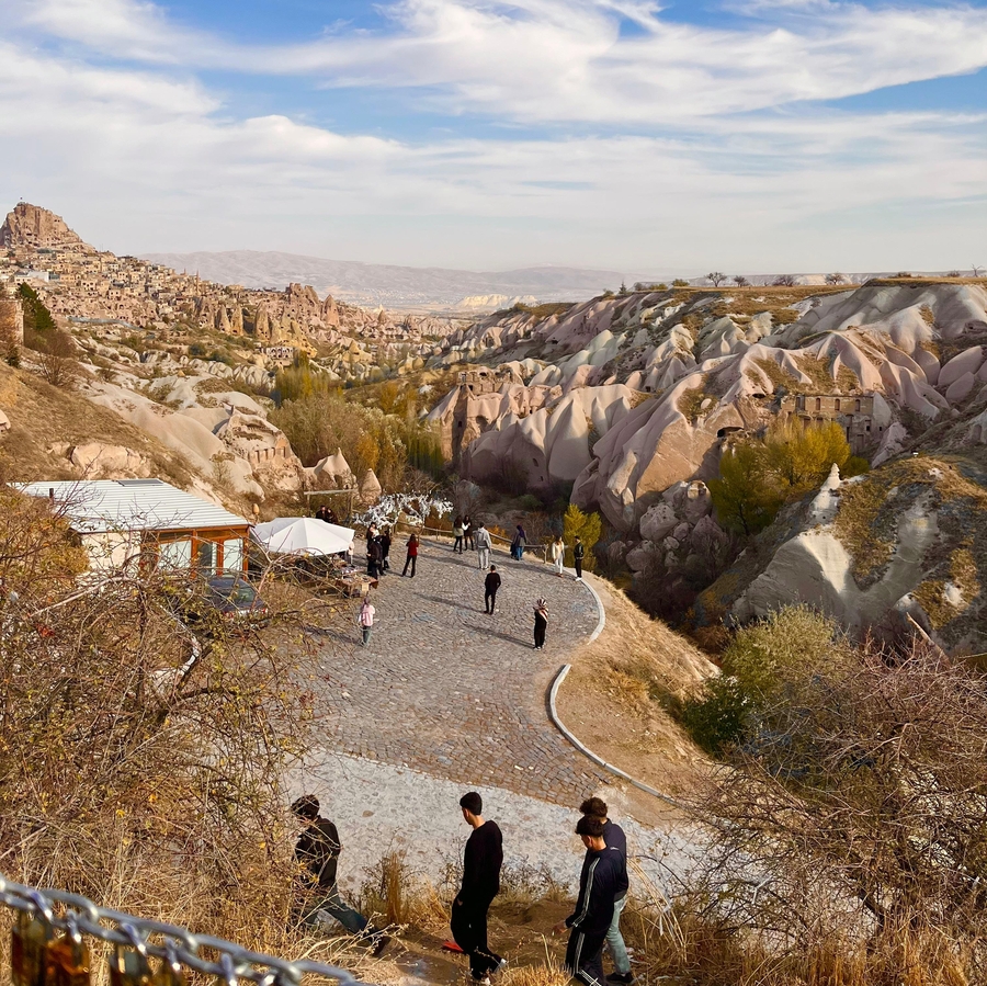 Kapadokya’nın öne çıkan doğal alanlarından biri olan Güvercinlik Vadisi’nde düzenlenen yürüyüşte öğrenciler, sonbaharın karakteristik renk geçişleriyle bütünleşmiş vadide bir rota tamamladı.