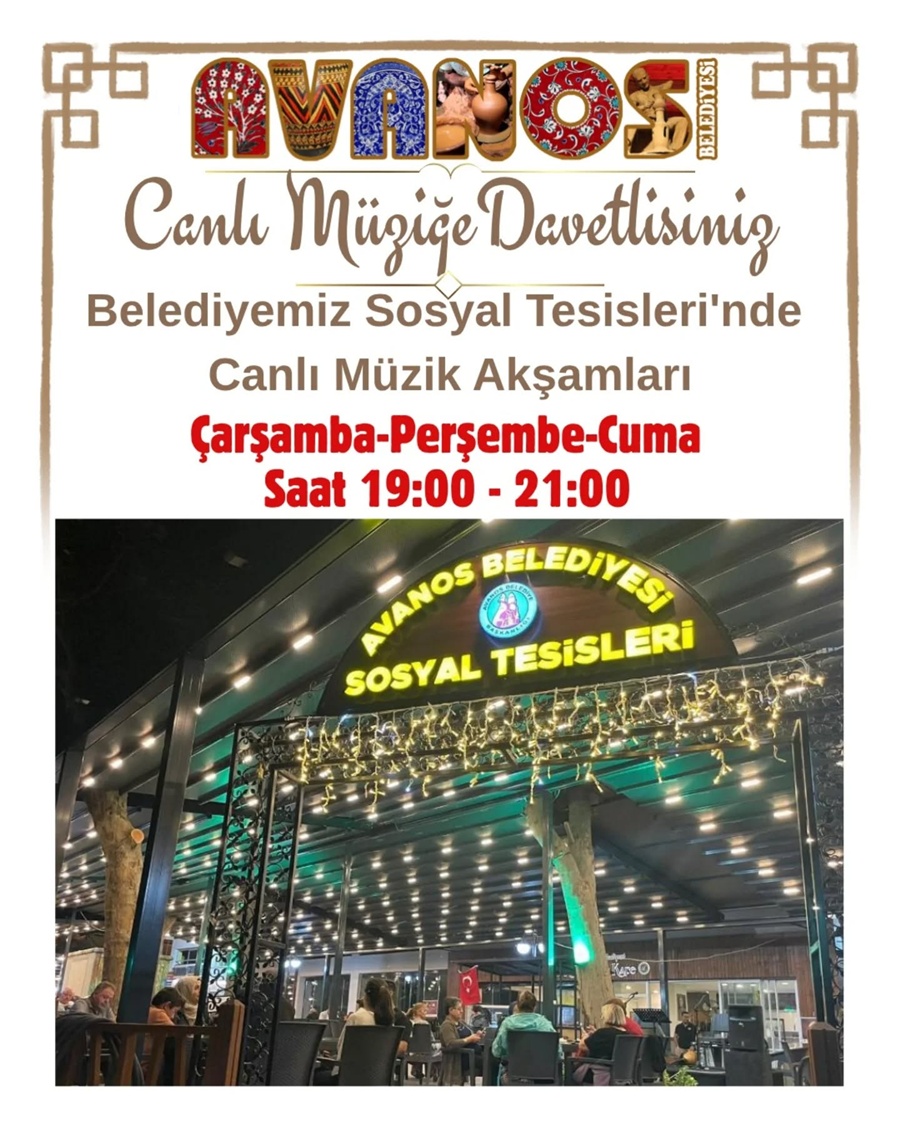Avanos Belediyesi, ilçe sakinlerine yönelik sosyal etkinliklerini sürdürüyor. Belediye, bünyesindeki sosyal tesislerde her hafta çarşamba, perşembe ve cuma günleri canlı müzik programı düzenleyeceğini duyurdu.