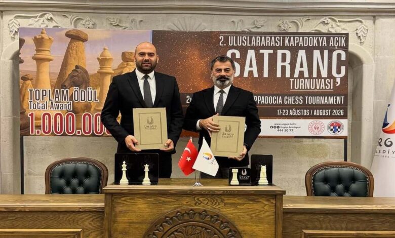 Ürgüp Belediyesi, 2026 yılının Ağustos ayında düzenlenecek satranç turnuvası için önemli bir adım attı. Ürgüp Belediye Başkanı Ali Ertuğrul Bul ile Türkiye Satranç Federasyonu Başkanı Fethi Apaydın arasında organizasyon protokolü imzalandı.