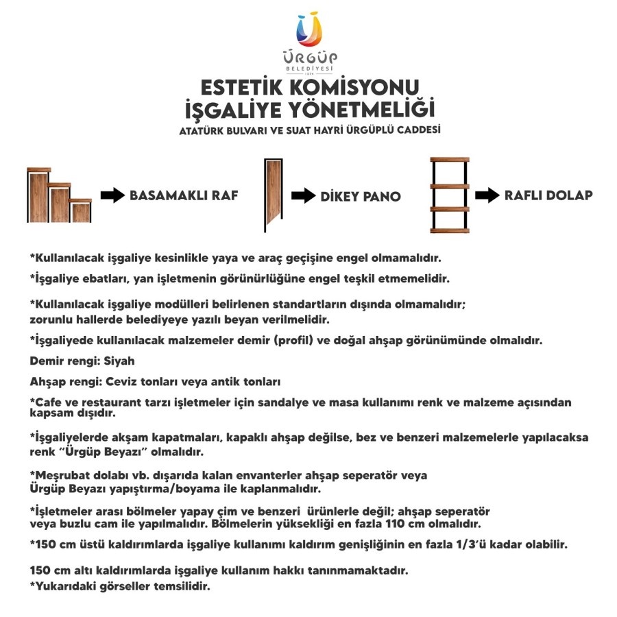 Belediye Estetik Komisyonu tarafından hazırlanan düzenleme, ilk etapta Atatürk Bulvarı ile Suat Hayri Ürgüplü Caddesi’nde devreye alındı. Çalışma kapsamında, cadde üzerindeki işletmelerin masa, sandalye, stant ve benzeri unsurlarla kamu alanını kullanırken uyması gereken ölçü ve sınırlar netleştirildi.