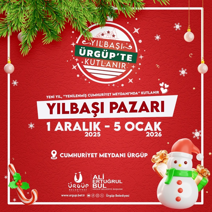 Ürgüp’te yılbaşı hazırlıkları başladı. Ürgüp Belediyesi, yenilenen Cumhuriyet Meydanı’nda 1 Aralık 2025 – 5 Ocak 2026 tarihleri arasında “Ürgüp Yılbaşı Pazarı”nı düzenleyeceğini duyurdu.